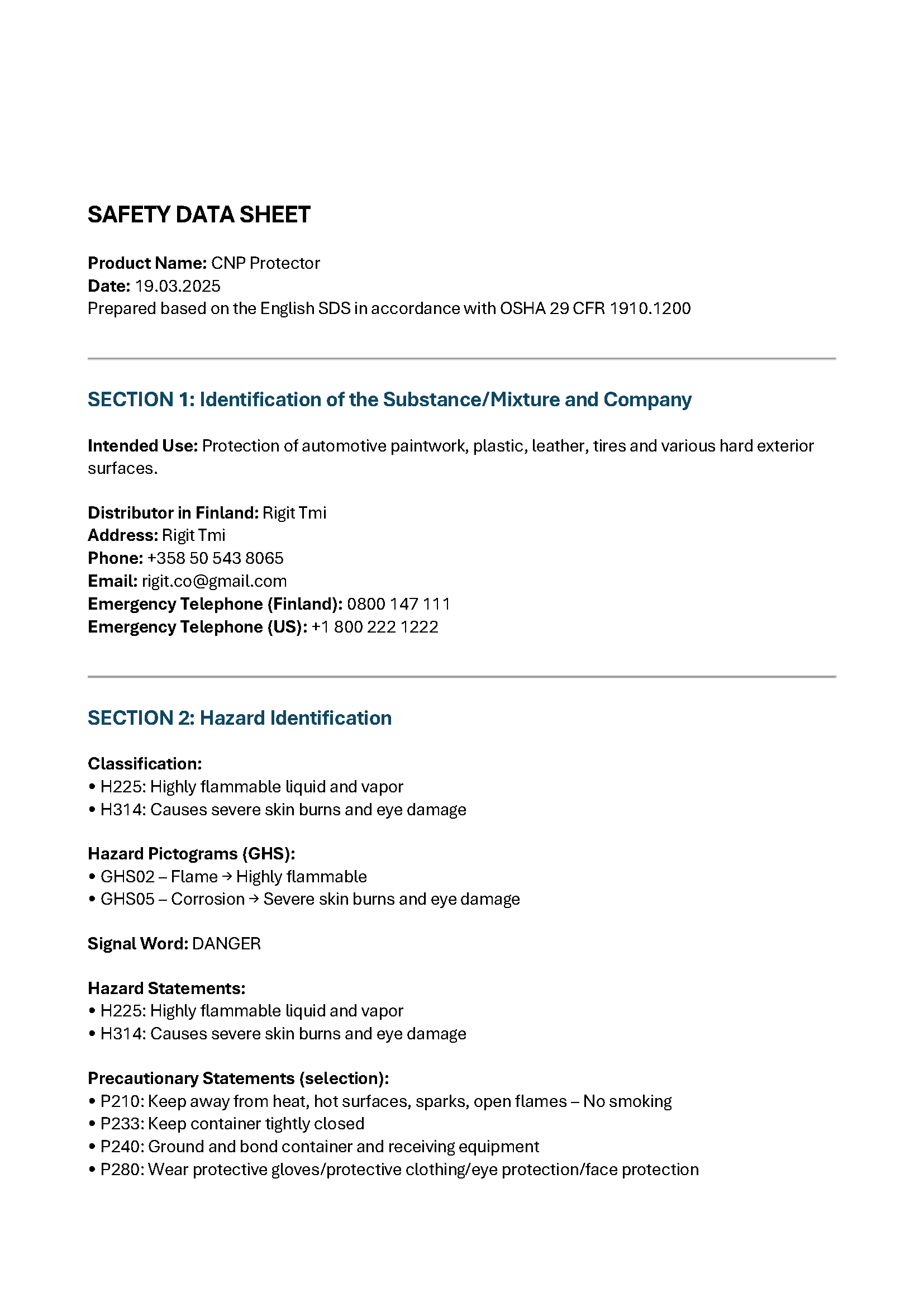 CNP Certified Nano Protection Protector 9H, a durable ceramic coating. Creates a dazzling mirror shine. Suitable for all paint surfaces. It protects the paint surface from external damage such as bird droppings or insect marks, UV radiation, acid rain and salt, and reflects heat away and makes the surface easier to clean.