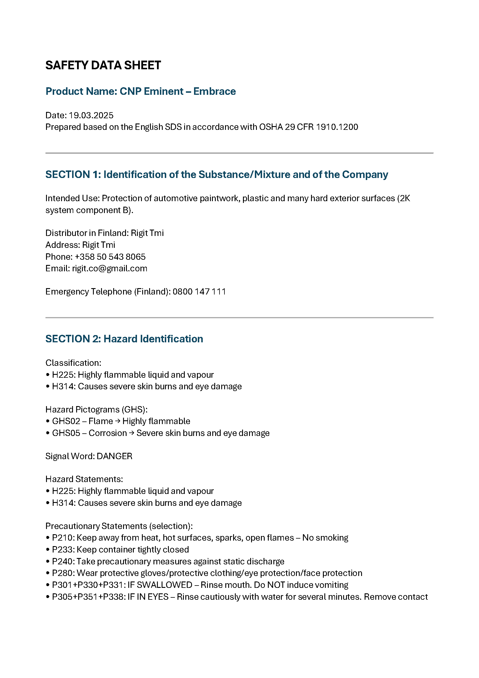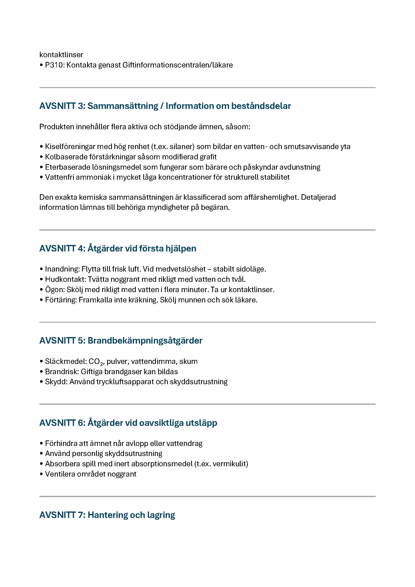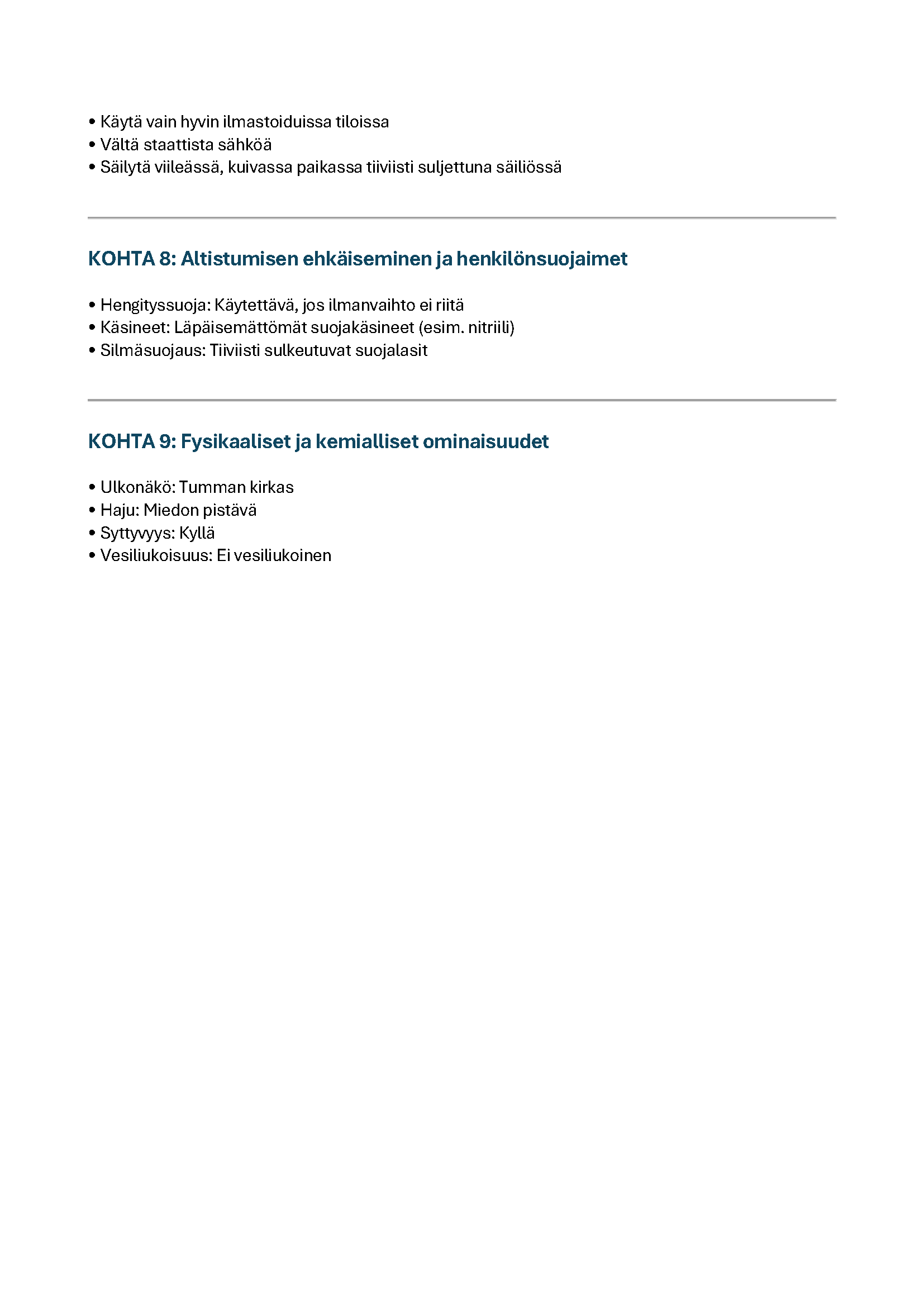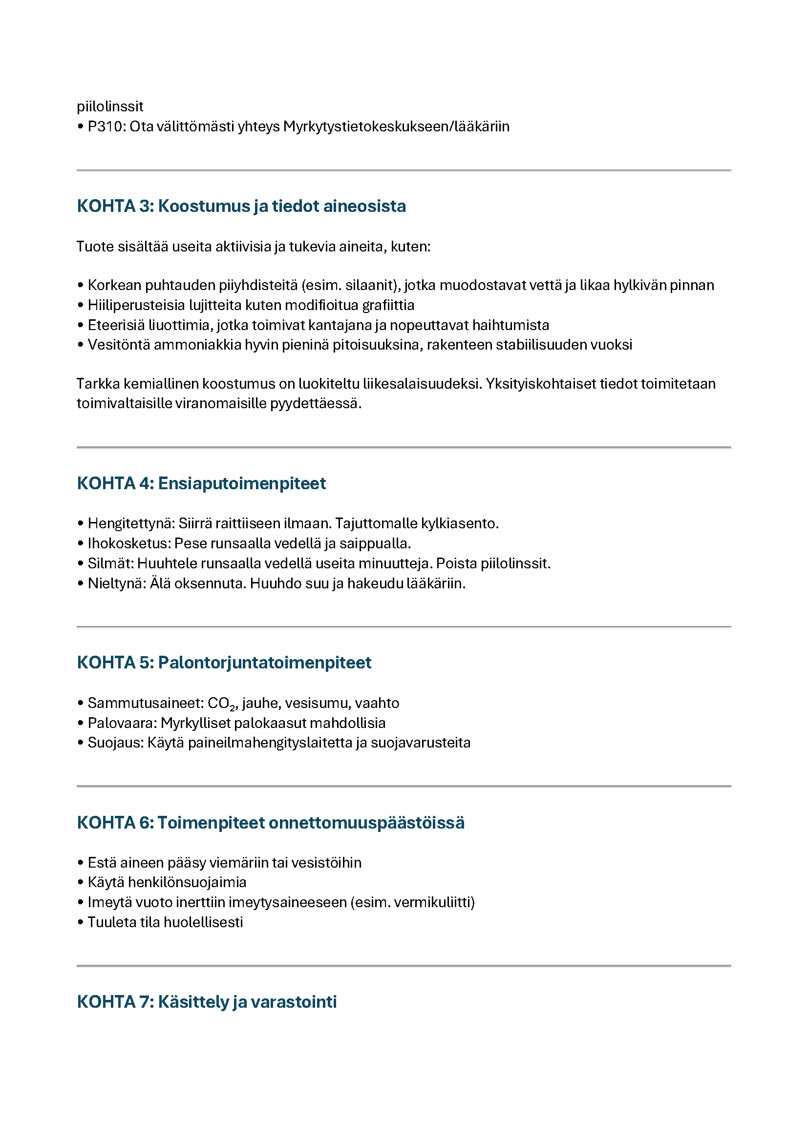 Käyttöturvallisuustiedote (KTT) toimitetaan maksutta ensimmäisen toimituksen yhteydessä.