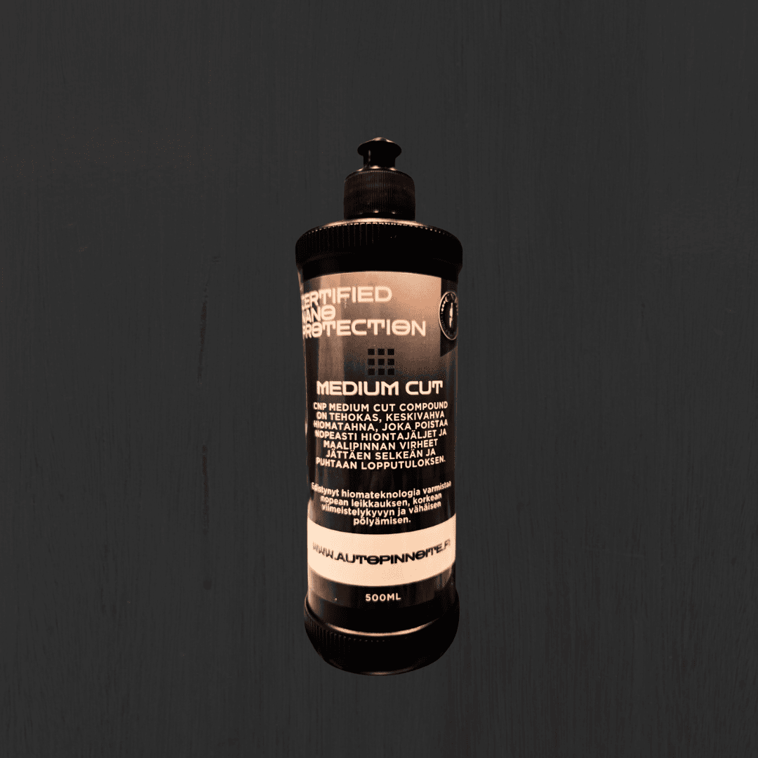 Medium Cut on sarjan monipuolisin tuote ja kuluttajan paras valinta. Se poistaa naarmut ja hologrammit, mutta viimeistelee pinnan samalla tasaiseksi ja kiiltäväksi. Soveltuu erinomaisesti one-step käyttöön, jossa yksi käsittely riittää.